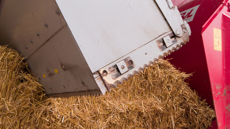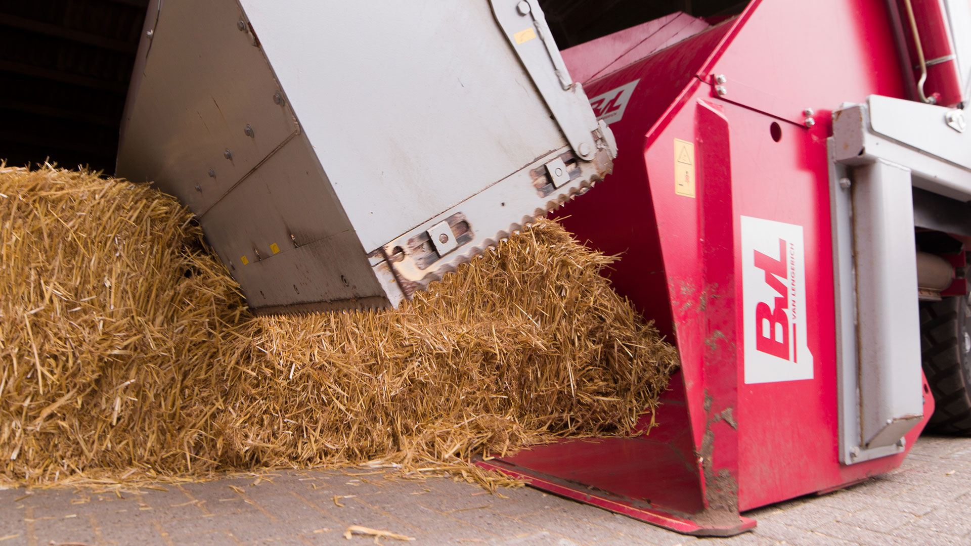 Fast alle unsere Futtermischwagen können mit unserem mechanisch angetriebenen Strohgebläse ausgestattet werden. Die patentierte, direkte Anbringung des Strohgebläses an die Mischwanne gewährleistet einen kontinuierlichen Materialfluss. Mit einer Wurfweite bis zu 30 m, seiner Leistung von 320 kg/min und der integrierten Steinfangmulde ist unser Strohgebläse ein echter Kraftprotz, der auf Sicherheit setzt.