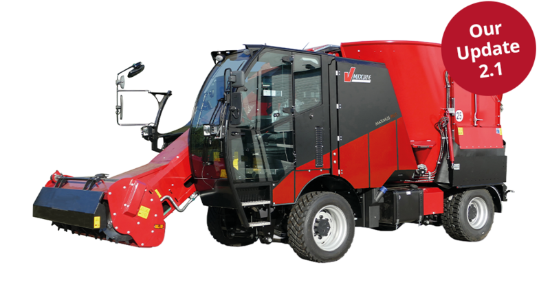 The 100 % on-demand differential lock provides for maximum traction when necessary. Operating convenience is also paramount inside the cab of the self-propelled mixer wagon V-MIX Drive Maximum Plus. As the self-propelled mixer wagon excels at straightforward and convenient single joystick operation, controlling the machine is as easy as can be.
